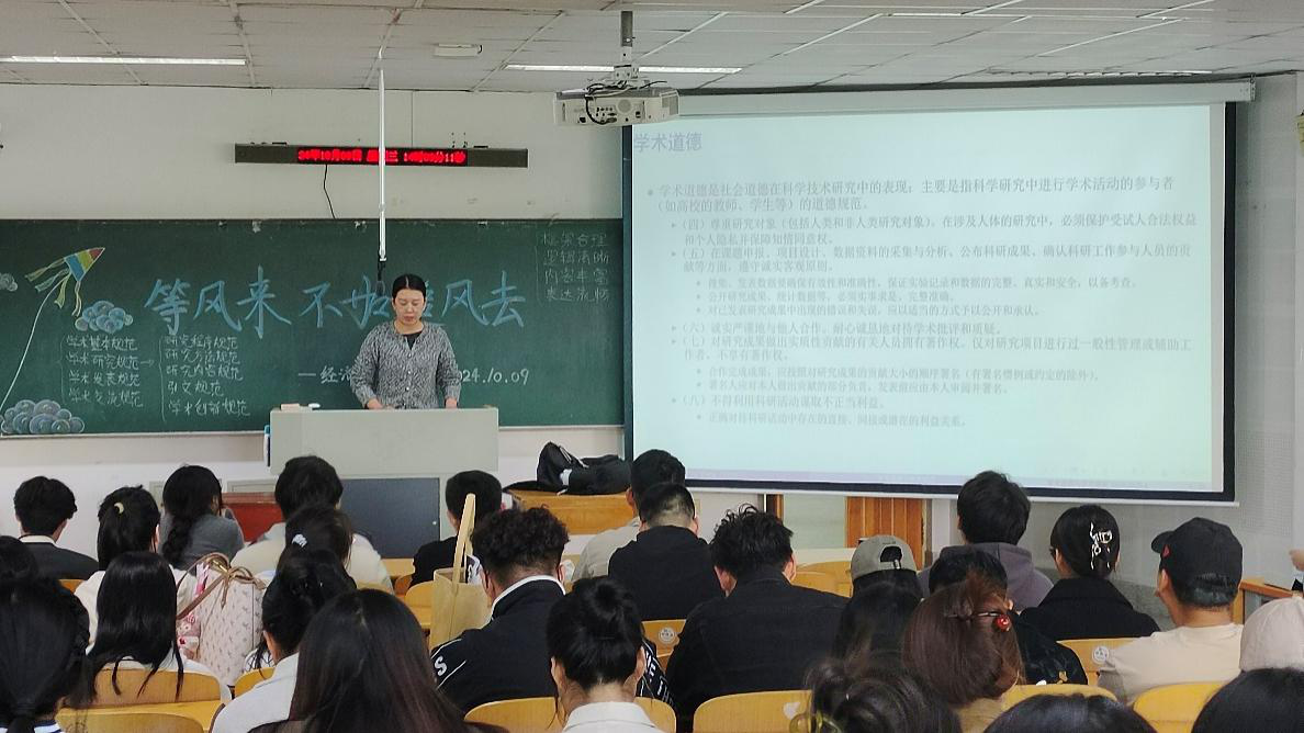 为做好研究生新生学术道德与规范的教育工作,引导他们树立正确的学术道德观念,taptap点点官网于10月9日举办了学术道德与规范专题讲座。讲座由研究生辅导员刘璐主持,教师王颖主讲,taptap点点官网2024级全体研究生新生参加。