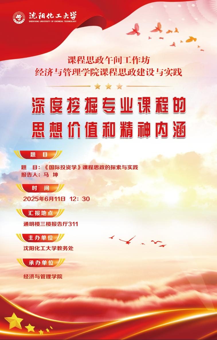 为全面推进学校课程思政建设工作,帮助专业教师开展课程思政教育教学改革,由我校教务处主办,各学院承办的2025年上半年课程思政午间工作坊的活动顺利开展。