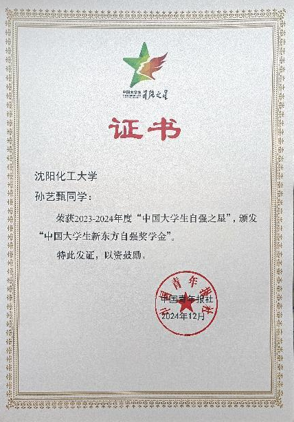近日,从共青团中央、全国学联传来喜讯,由团中央基层建设部、中国青年报社、新东方教育科技集团、中国青年创业就业基金会联合举办的2023 - 2024年度“中国大学生自强之星”奖学金评选结果揭晓,taptap点点官网孙艺甄同学凭借出色的个人表现和突出的自强事迹,荣获“中国大学生自强之星”荣誉称号。